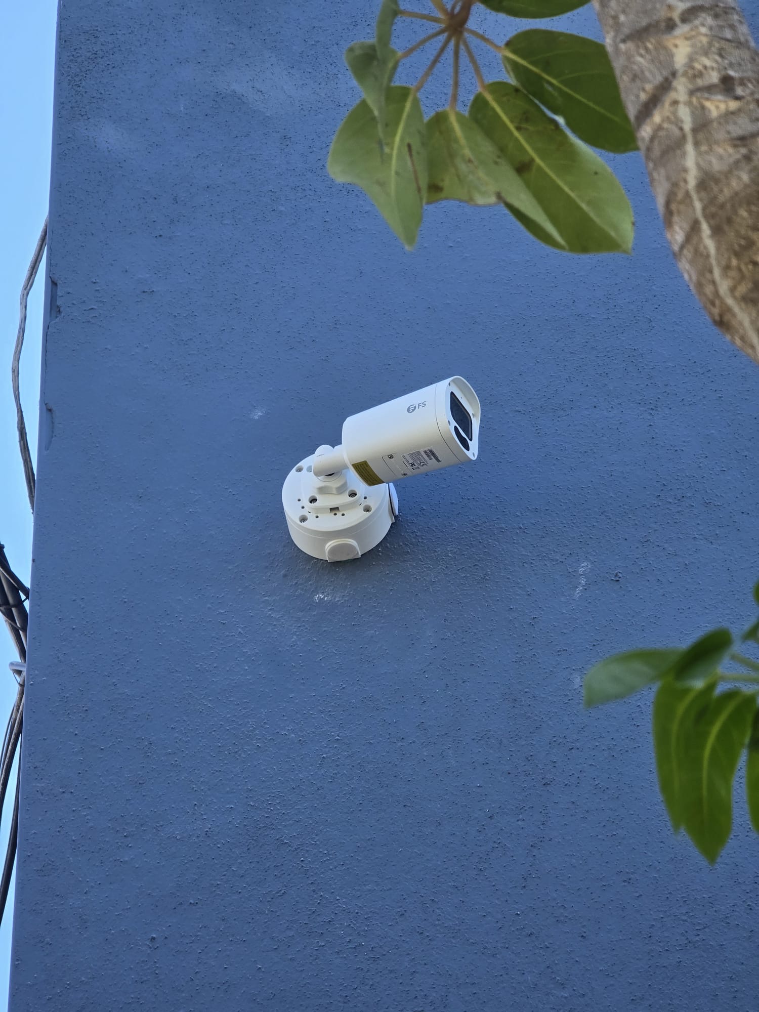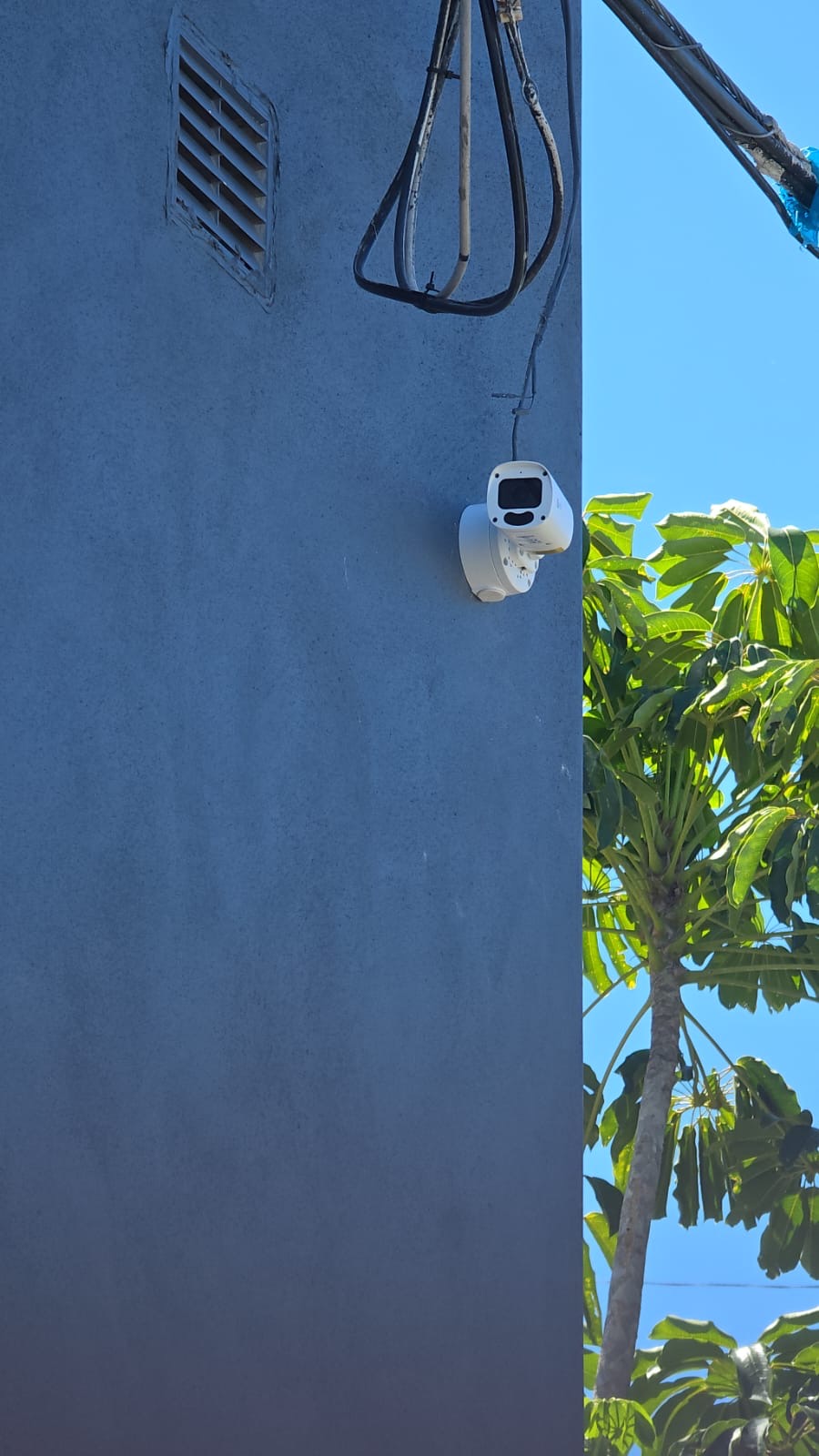 - Security camera on blue wall