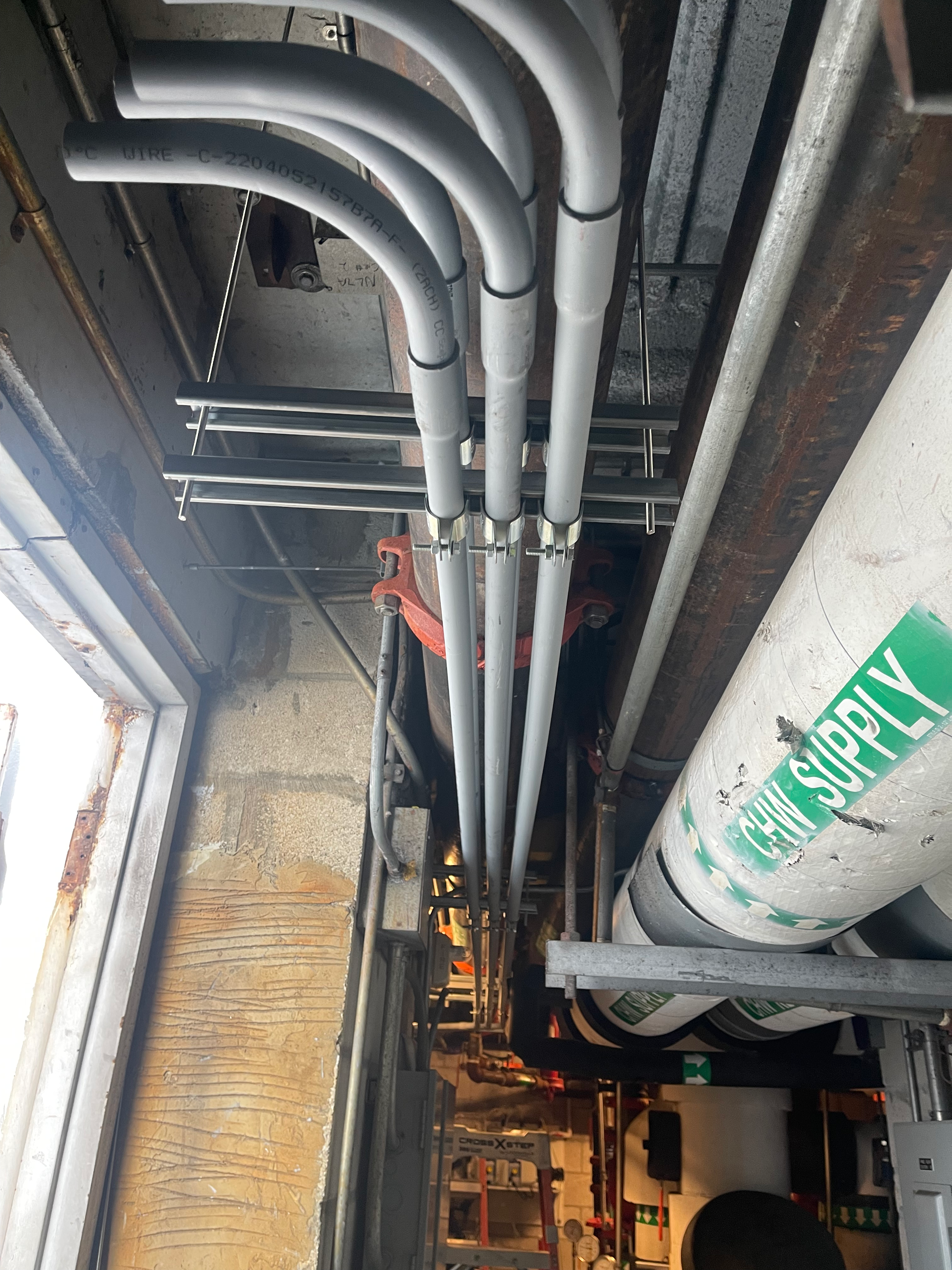 - Electrical conduit and wiring installation.