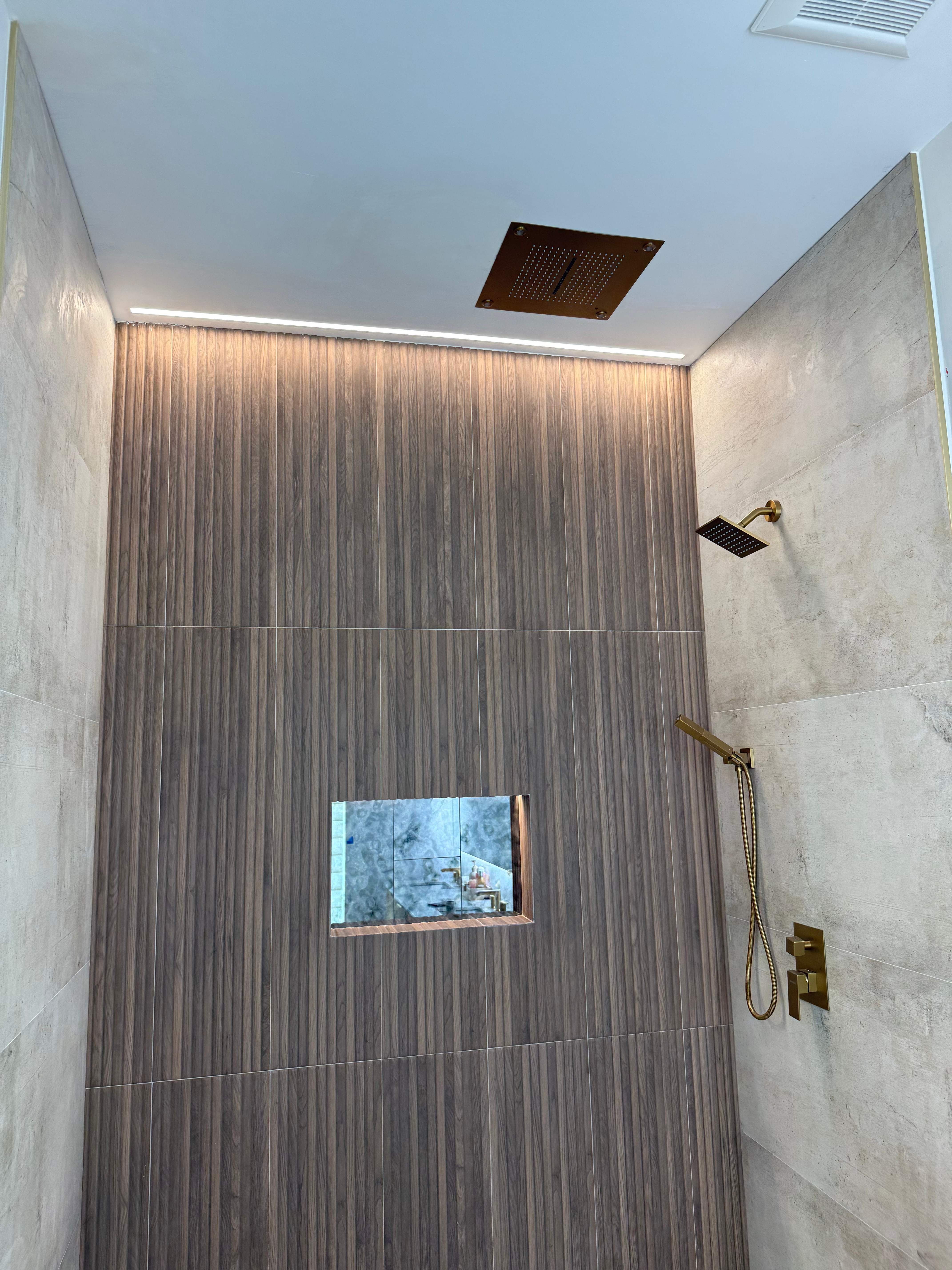 - Modern shower with linear lighting, electrical contractor portfolio
