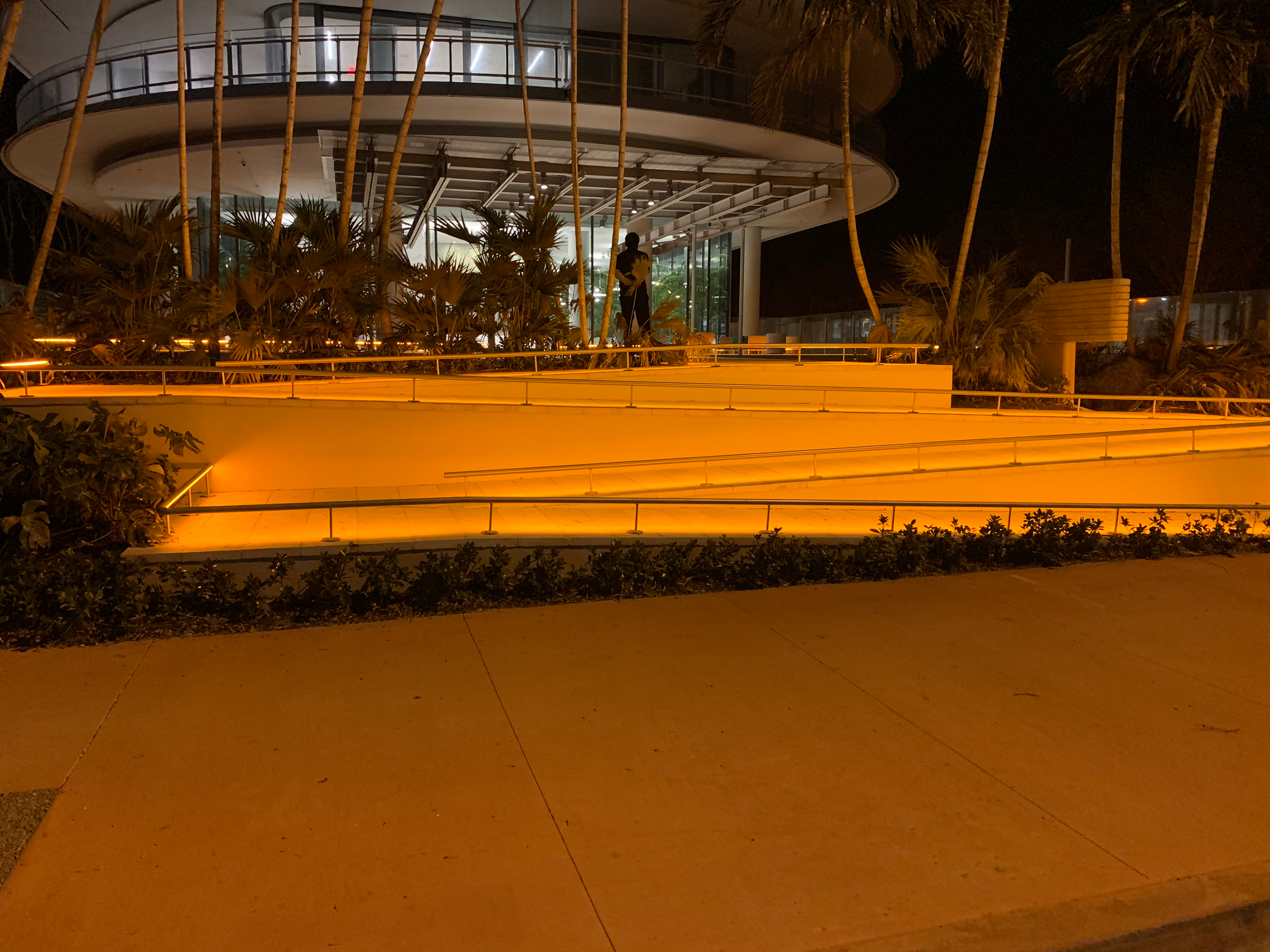 - Florida building at night, warm architectural lighting