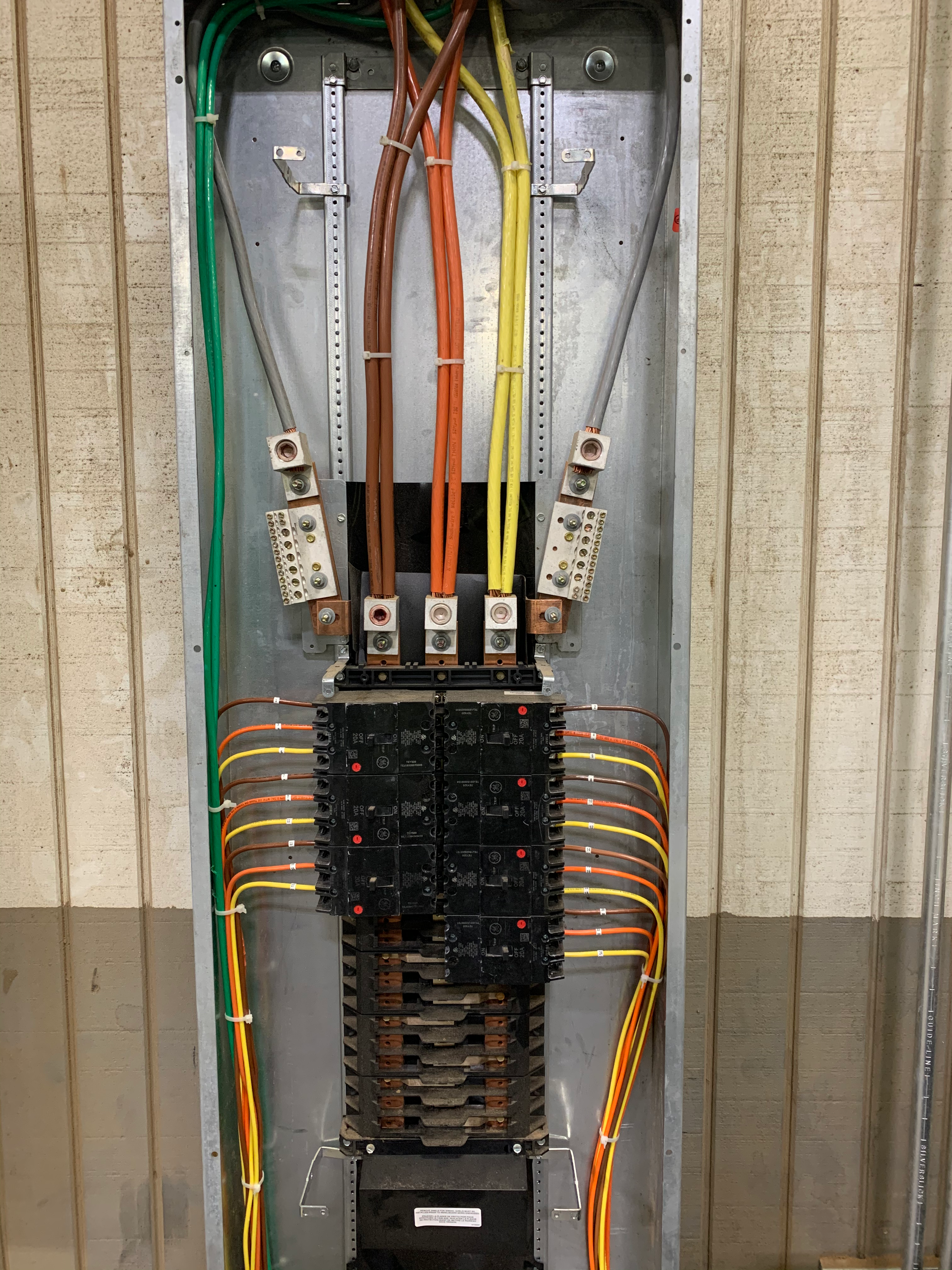 - Electrical panel wiring, showcasing an electrical contractor's work