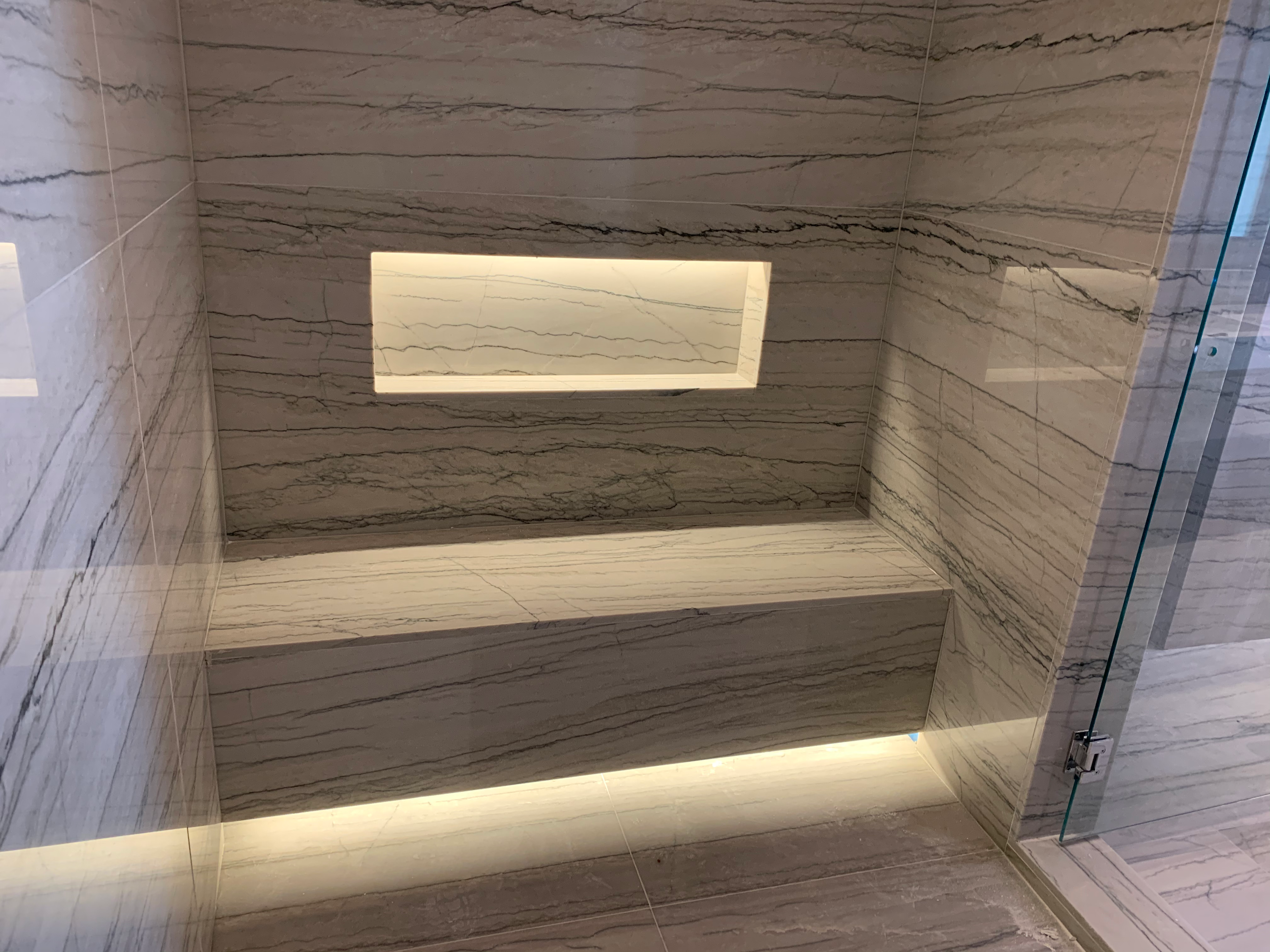 - Modern marble shower with LED lighting, electrical contractor portfolio