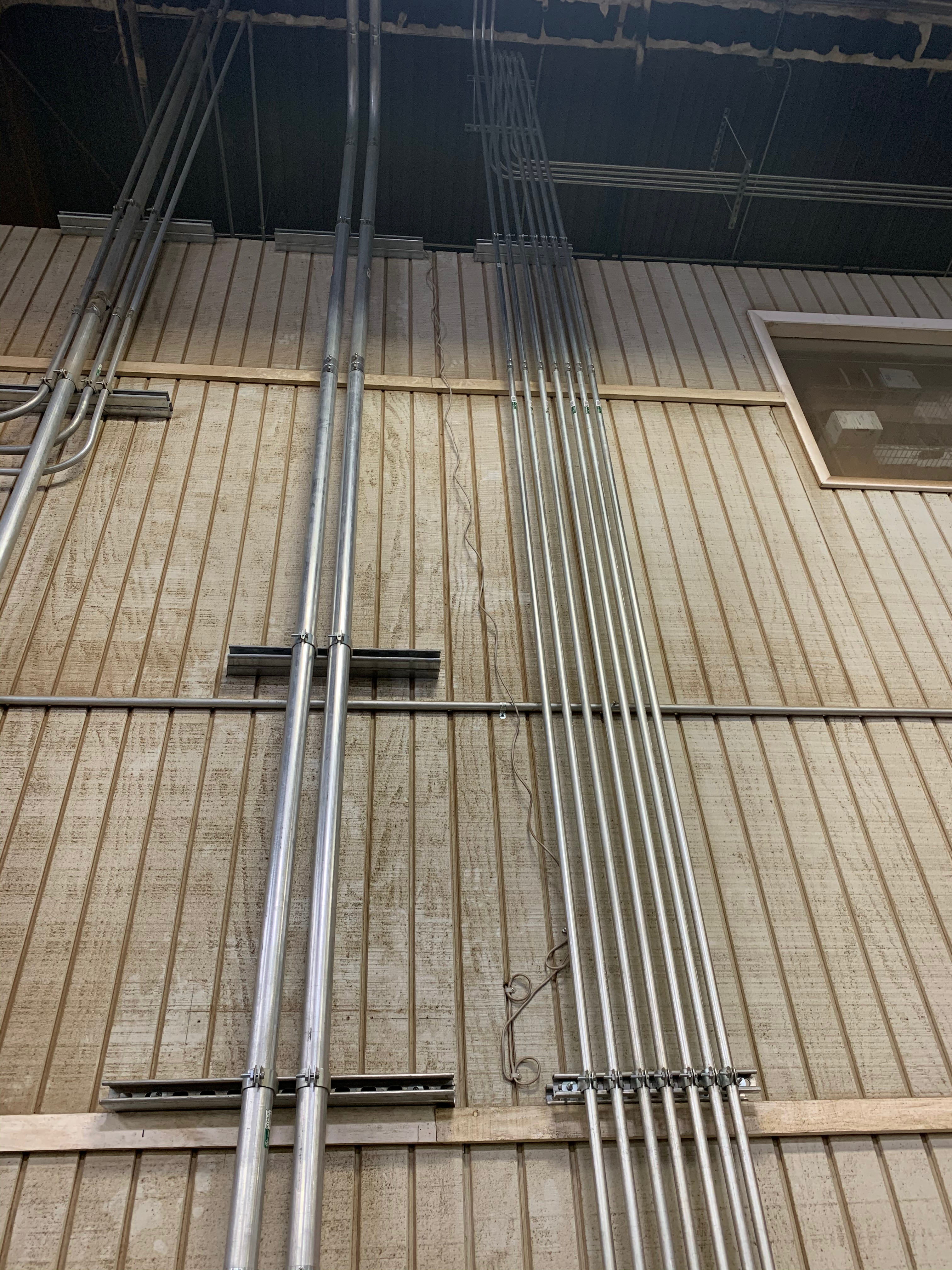 - Electrical conduits on wooden wall by a Florida electrical contractor.